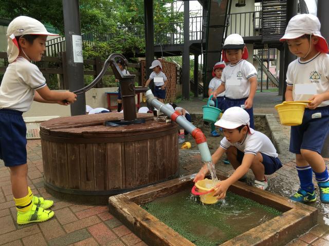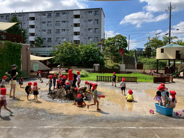 5月から9月まで、天候にかかわらず快適な状態で水遊びや、水泳の基礎を行います。水に慣れ親しみ健康な体を作ることを目的にしております。