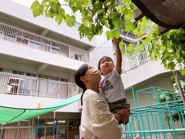 園の近くには「光徳公園」っていう大きな公園があって、子どもと手を繋いでお散歩に行きます(^^)季節の感じたり、自然に触れて遊んでいます。