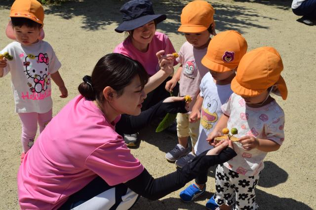 〇広い園庭にはどんぐりの木やりんごの木、みかんの木など様々な植物が植えてあり、季節ごとに自然が感じられます。