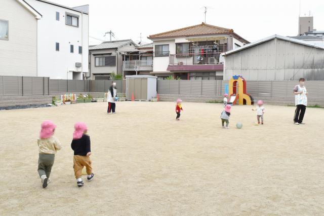 登園から午前中は室内で好きな遊びや製作を行ったり、戸外(園庭)でおもいきり身体を動かしたりします。給食を食べ、午睡後はゆったりとした環境の中、友だちや保育士と一緒に様々な遊びに取り組んでいます。