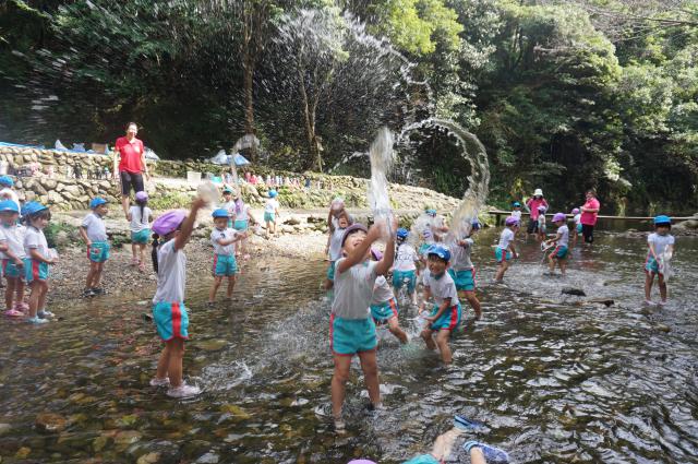 自然とふれあうことにも配慮し、園庭でのドングリひろいや虫探し、野菜、果樹(びわ、ブドウ、みかん類、レモン等)の栽培収穫を通して、食育や好奇心、探究心を深められるようにしています。