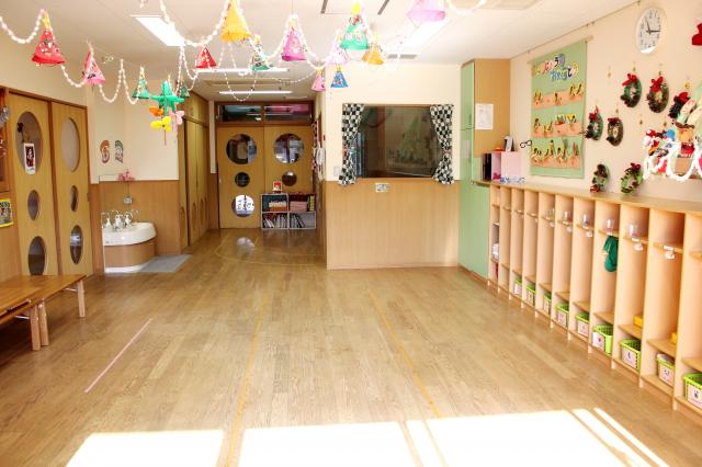 園庭を囲むように保育室があるので、すぐ気軽に園庭に出ることが出来ます。全保育室が1階にあります。毎日のちょっとした時間にお外遊びが出来ます♪