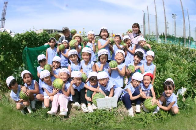 ・広い自然観察農園で米や野菜の栽培を行ない、収穫を体験し、調理体験をしたり給食の食材として食べることで、美味しさや豊かな気持ちを得て、食への興味を育てています。
