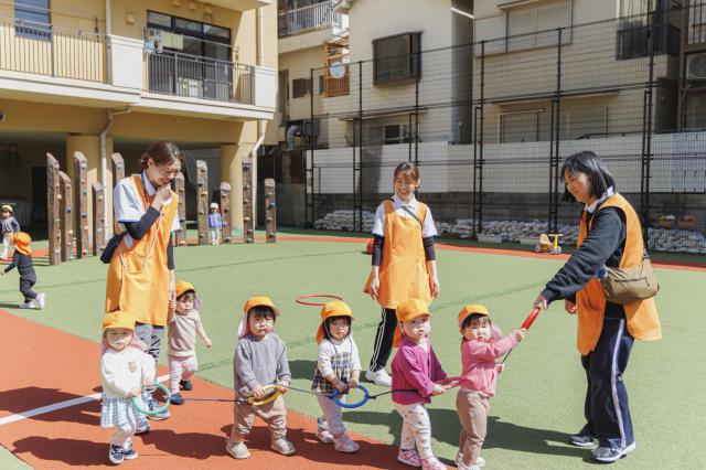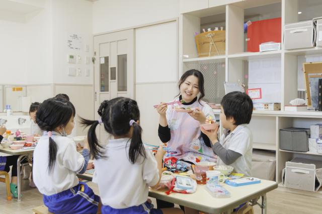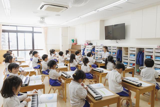 愛和学園の特徴は、まず給食です。人間は食べたもので出来ていますから、食事にこだわり完全無添加にこだわっています。また、乳、卵、小麦粉不使用で、和食のオーガニック給食にしています。その結果、職員たちにとっては、食物アレルギーに伴う事故の予防につながっています。0~2歳の乳児保育においては、育児担当制を導入し、基本的生活習慣を身に着ける過程で自己肯定感を育むような保育を心掛けています。一方、3~5歳の幼児保育に関しては、スピード感を大切にし、様々なカリキュラムを毎日行うことで、子どもたちの潜在的な能力を開花させるような保育を心掛けています。特に力を入れているのは、音楽と体操です。音楽に関しては12月中旬に阿倍野区民センター大ホールを貸し切り、クリスマス音楽会を毎年開催しています。また、体操に関しては、中央体育館を貸し切って、「愛和オリンピック」という名で、日頃の体操の成果を保護者様に見て頂く機会としています。どちらもYOUTUBEで公開しているので、一度見てください。