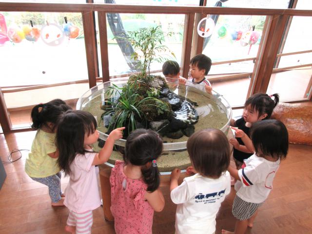 当園では「こども園・家庭・地域の和」を大切に考え、子どもたちに対して『感性、ぴぴっ。個性、きらり。』をスローガンに掲げ、これからの人格を形成する大切なこの時期に、柔らかな感性を持つ子どもたちの個性を尊重し、その豊かな感性をより一層伸ばして、想像力豊かな子どもたちを育んでいくよう、心がけています。