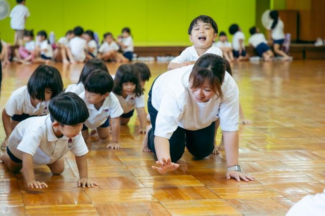 三愛幼稚園(幼稚園型認定こども園)・三愛こども園(認可保育所0才~2才)共に担任希望ができ、行事などは学園全体で協力し合って取り組んでいます。