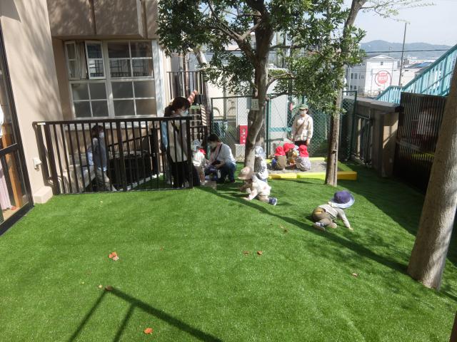 乳児(0~2歳児)については、乳児期の発達の順序性を重要視し、身体的情緒的発達を丁寧に確認しながら、ひとりひとりを大切にした保育をしています。まずは特定の大人との信頼関係を築き、ひとりひとりの個性や発達の段階をきちんと把握した上で保育を進めていけるように、育児担当制を取り入れています。