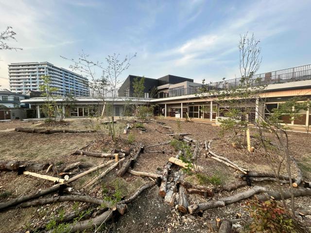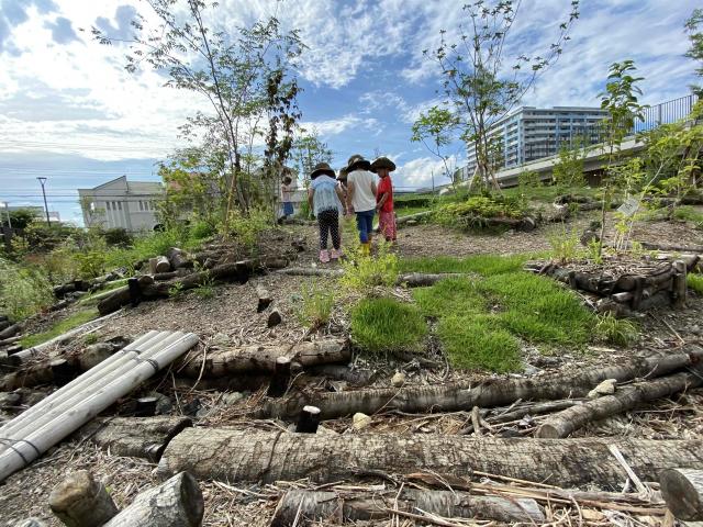 園庭には築山があり、たくさんの木々に囲まれ雨水がたまると川になって流れたりととにかく緑豊かな園庭が魅力です。こどもがワクワクする姿を間近でみられることがこの仕事の魅力です。