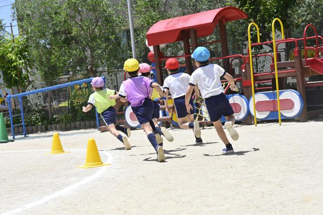 3歳4歳5歳の“縦割り教育”をしています。2クラスもしくは3クラスのオープンクラス編成で、経験の浅い先生と経験のある先生で複数担任をしています。