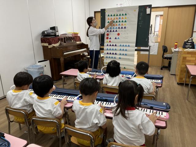 小さな頃から基本的生活習慣が身につけられるようなカリキュラムが編成されており、生きていくうえで大切な挨拶や返事、靴を揃える、離席の際に椅子をしまう等、日々の積み重ねを重視した指導を行っています。