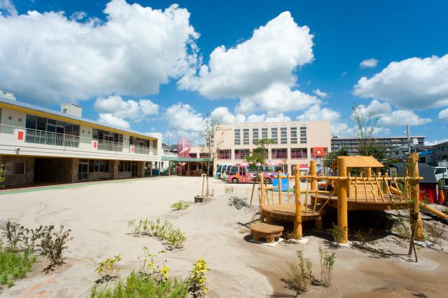 比較的自然豊かな高槻の地。園庭も工夫を凝らして自然を取り入れています。