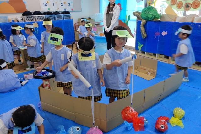 幼稚園の教育は楽しいことが基本、楽しくなければどんなに正しくても子どもの心には響きません。総合活動や表現活動、また日々の遊びを通して主体的で自由でのびのびとした活動を行い、子どもたちの楽しみの中から可能性を引き出し、様々な行事や文字・数・英語などの知的な保育活動を行い、小学生になっても最初の段階でつまづくことがないように、園の教育が小学校につながることを見据えて教育を行っています。独りよがりの保育にならないように多面的に子どもの育ちに配慮しています。