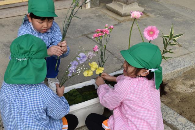 幼児期に、偏りなく様々な体験をして、自分の好きなこと、得意なことを見つけて欲しいという願いから、知能教材、体操、英語、リトミック、科学教室、和太鼓などを取り入れています。