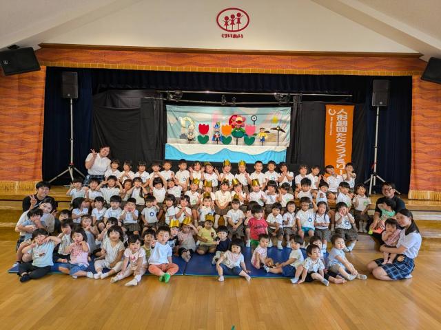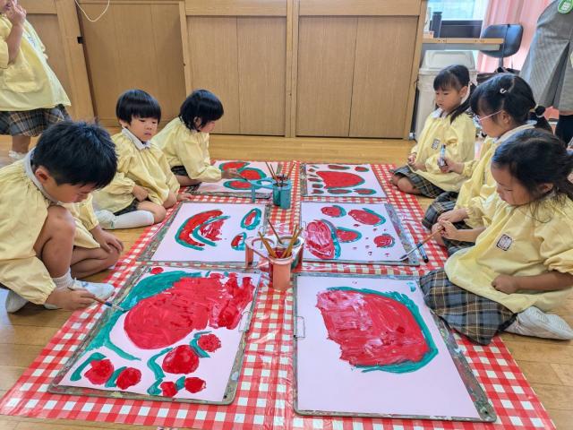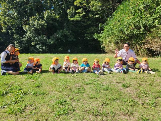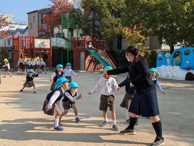 大きな保育目標としては「共に育ち合う」事です。更に①ほとけさまを拝む、明るくて豊かな心を持った子ども②健康で心身共に活動的な子ども③お友達と仲良くあそび誰からも愛される子ども④「ありがとう」と素直に喜び、たたえる子ども⑤よく聞く態度と、理解力、創造力をもった子どもの育成を目指しています。日々の保育は、仏教保育、運動あそび、絵画・造形、声楽・器楽演奏の4本柱を軸に保育をしています。運動あそびは、遊ぶ経験が乏しい子ども達に遊ぶ環境を与えて、体の使い方を覚えたり、体幹を養ったり、基礎的な身体作りを子ども自ら活動するものです。絵画・造形は、子どもの表現力を養います。絵本等の導入で子どもが感じたものを画用紙に自由に表現し、描く楽しさを味わいます。声楽は、キレイな透明感のある歌声で特に高音をぐんぐん伸ばしていきます。卒園時には2オクターブ程の音程が出ますので歌のレパートリーが拡がります。器楽演奏は、沢山の楽器を使って音の楽しさを味わい楽器に親しんでいきます。仏教保育は毎日お参りがあります。