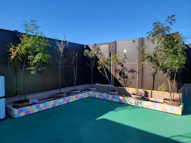 近隣の公園では、自然との触れ合いを通して生命の大切さや考える力、他人を思いやる心を育み、自己肯定感を育みます。屋上園庭には砂場や花壇もあり、園庭開放では遊び道具を自由に利用できます。保護者や地域の方々と共に、子育ての楽しさや成長を分かち合い、子どもたちの個性を大切に育んでまいります。