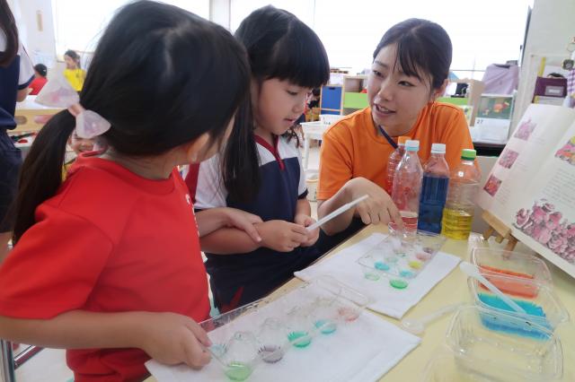 片づけや準備などの裏方仕事も多いですが、制作活動やダンス、化学遊びなど、メインで活動を進めることもあります。苦戦している子にそばで教えたり、担任の先生とは違う立場から声をかけたり、一人ひとりが安心して参加できるように工夫しています。