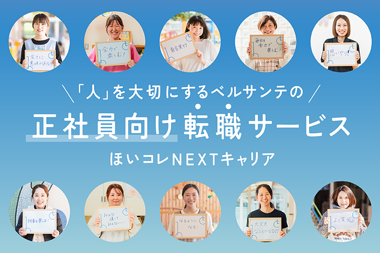 - 1「ほいコレ」に掲載している保育求人は、「ベルサンテ」と「ベルサンテスタッフ」の関西・東海の担当者が実際に保育園に訪問をします。